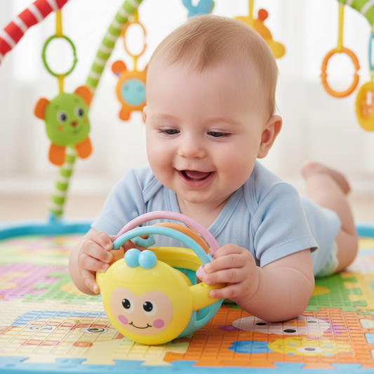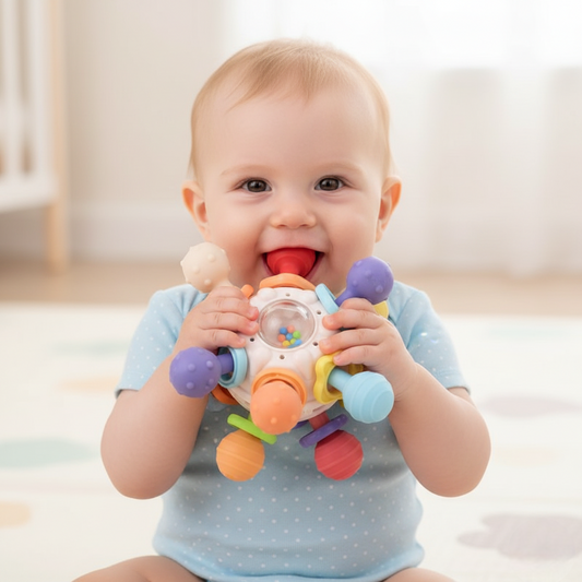 À partir de 6 mois, lorsque la dentition commence souvent, les hochets avec parties à mordiller comme nos modèles en silicone deviennent particulièrement utiles. Ils soulagent les gencives tout en offrant une stimulation sensorielle.